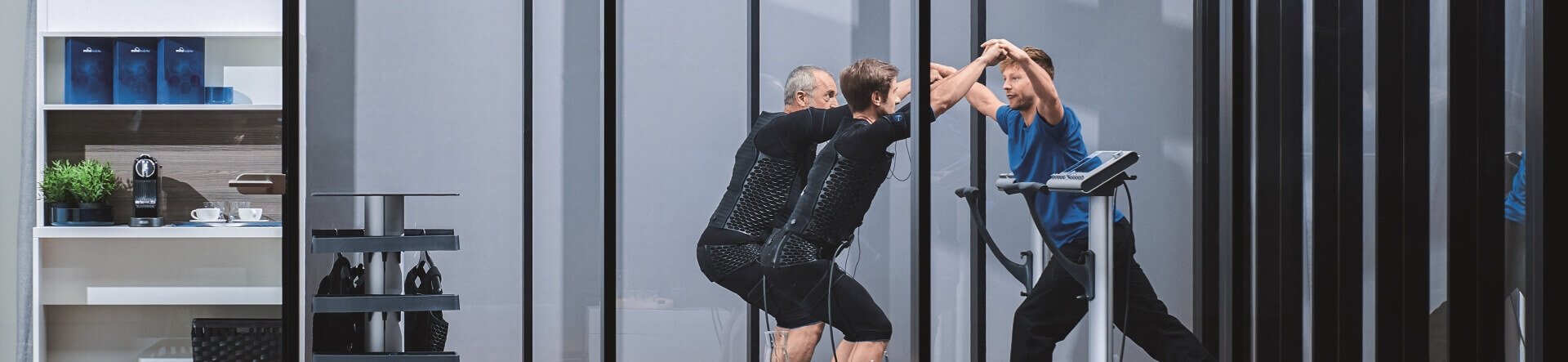 Vším potřebným pro EMS Vás vybavíme, nepotřebujete vůbec nic. Žádné sportovní oblečení, žádné tenisky, žádné cvičební pomůcky.